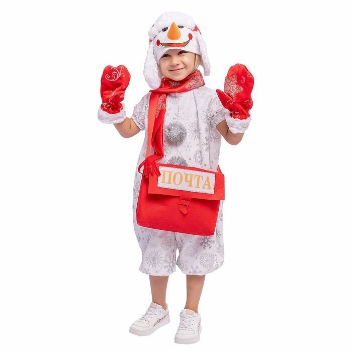 СохранитьКарнавальный костюм Пуговка "Снеговик Гоша", размер 104-52, с почтовой сумкой (971 к-22-26) интересное: