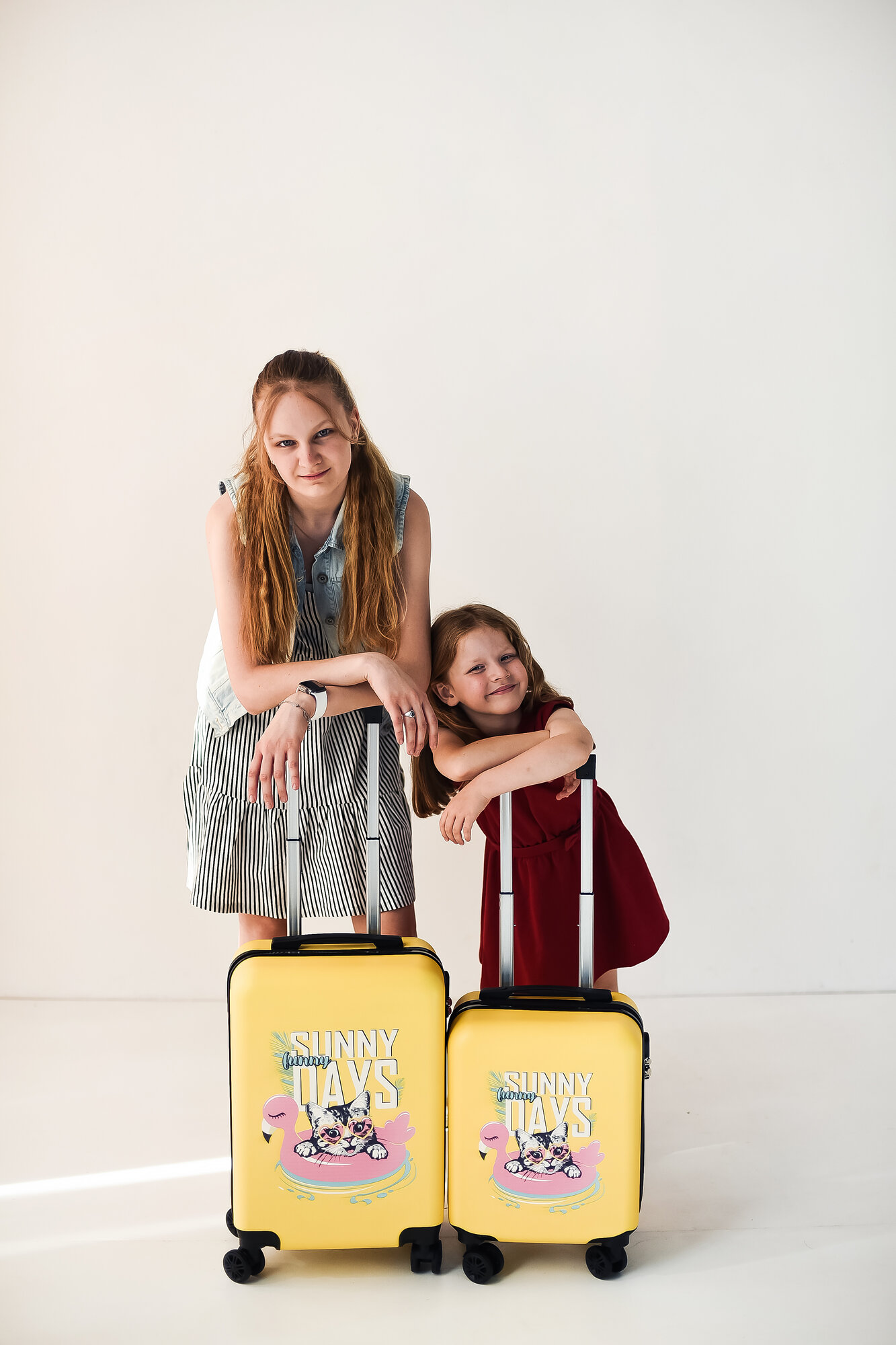 Чемодан малый 18"на молнии, 4 колеса, цвет жёлтый
