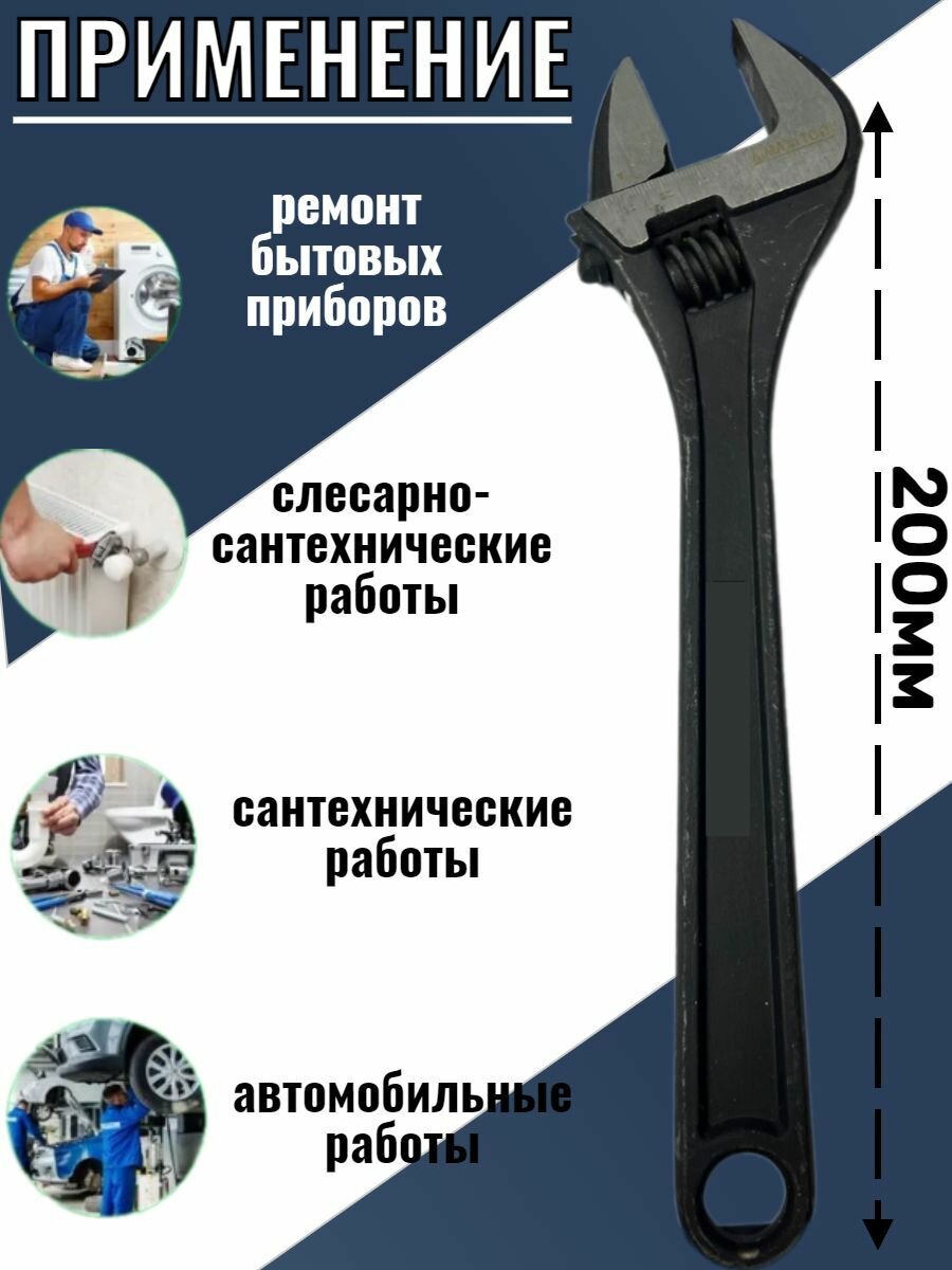 Ключ Разводной, Сантехнический "8" 200мм, с расстоянием губок 28мм интересное: