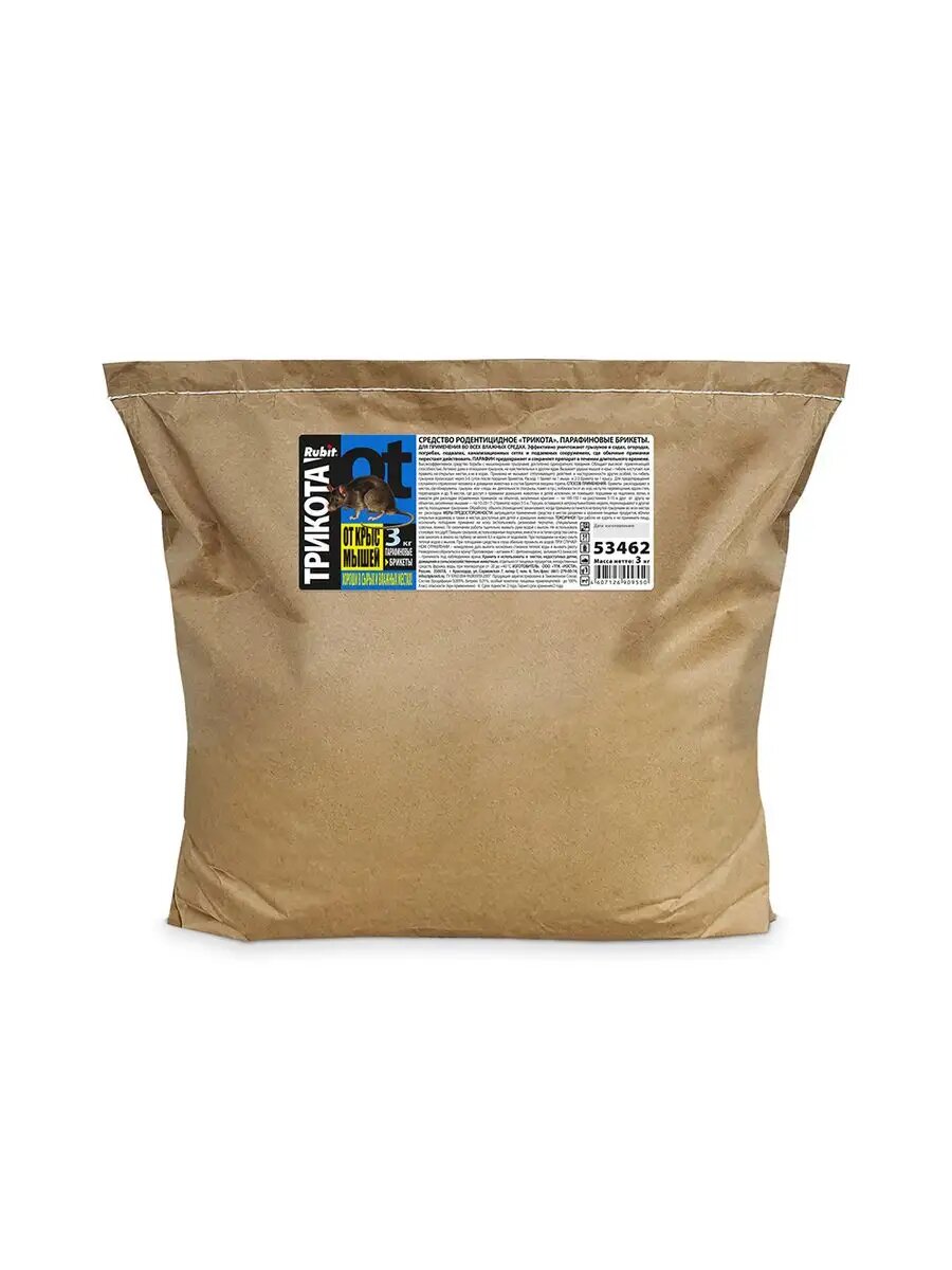 Средство против грызунов крыс и мышей Rubit ТриКота тесто-сырные брикеты мумифицирующий эффект 48 доз 3X150г