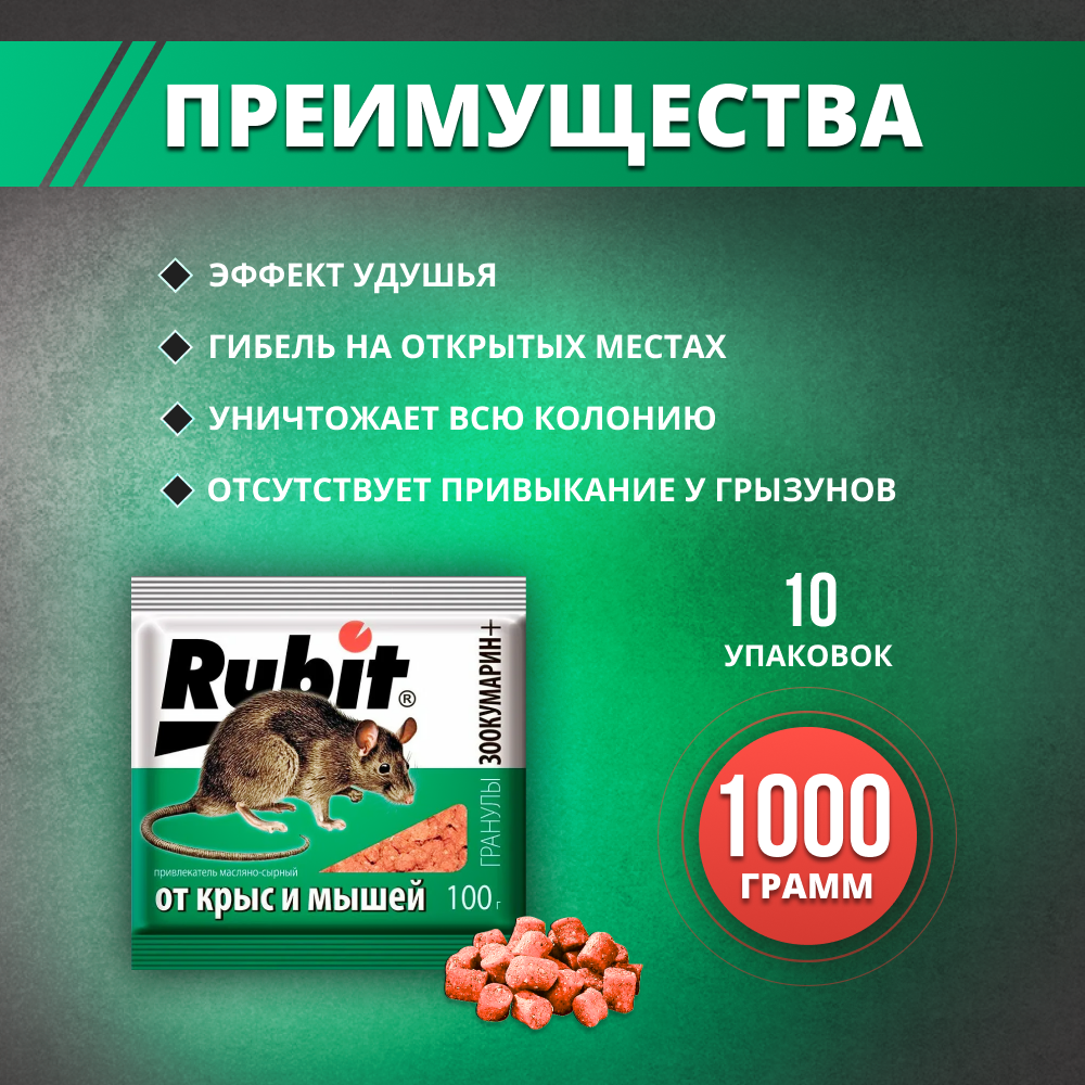 Купить Отрава для крыс и мышей гранулы 1 кг Rubit зоокумарин