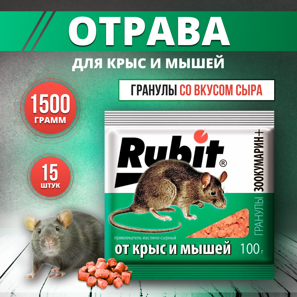 Купить Отрава для крыс и мышей гранулы 1,5кг Rubit зоокумарин