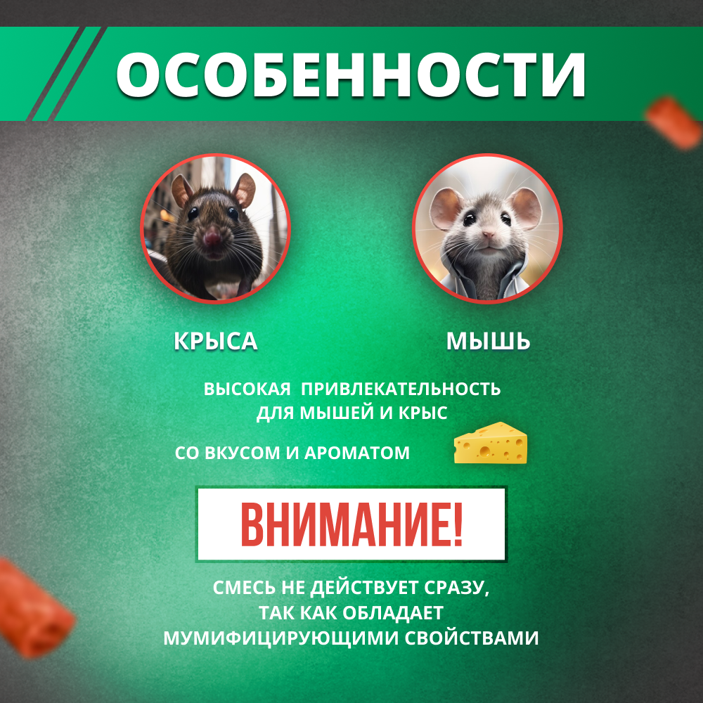 Тесто-сырные брикеты от крыс и мышей 200г. Вкус мяса и сыра.