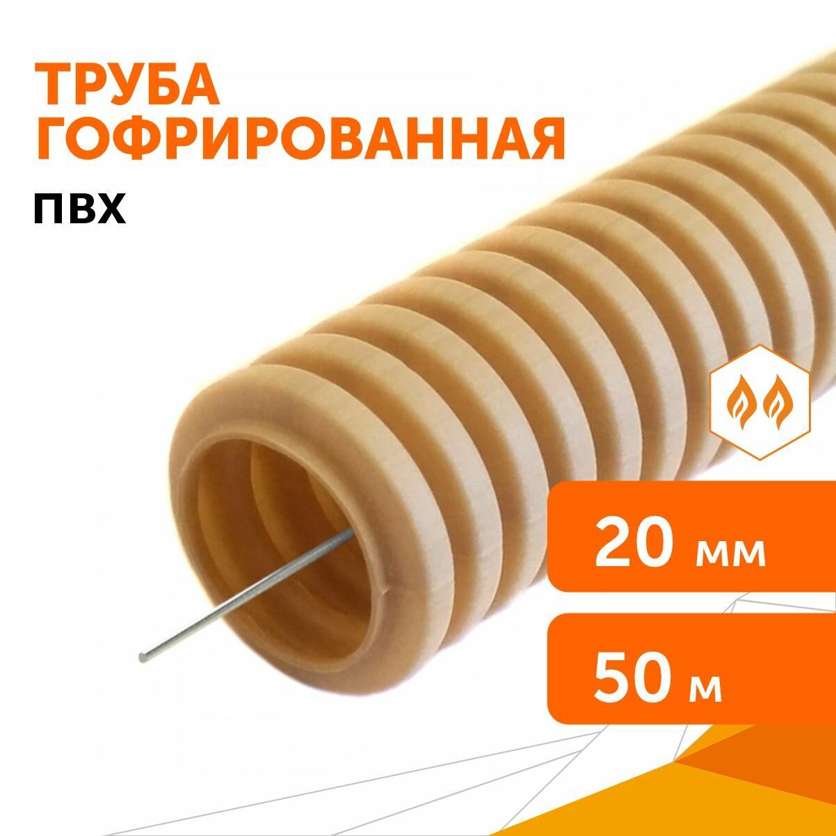 Труба гофрированная ПВХ легкая 350 Н оранжевая с/з d20 мм, 100 м/уп