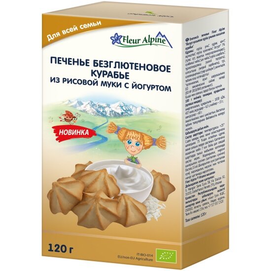 Купить Печенье детское Fleur Alpine (Флёр Альпин) безглютеновое "Курабье из рисовой муки с йогуртом" с 36 мес 120 г