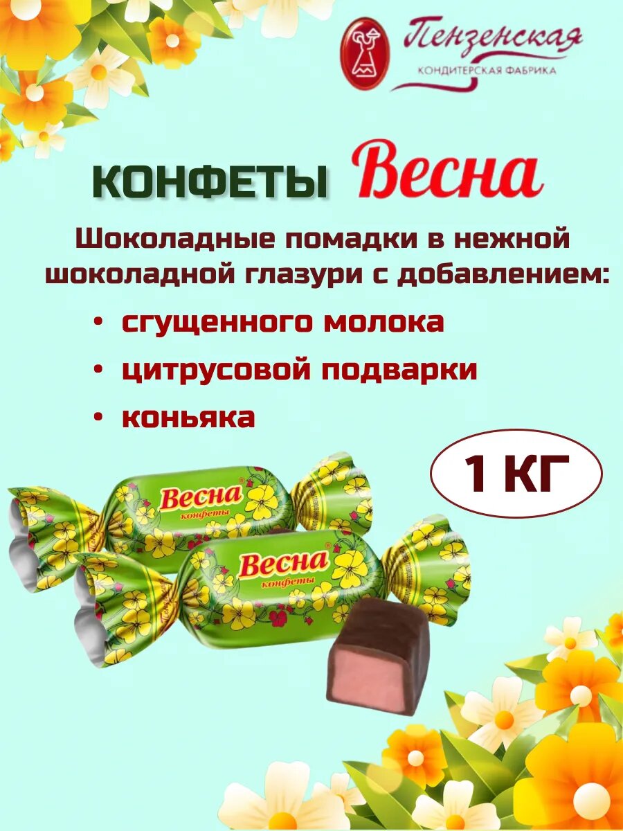 Шоколадные конфеты Весна ПКФ помадные на сгущенном молоке 1 кг