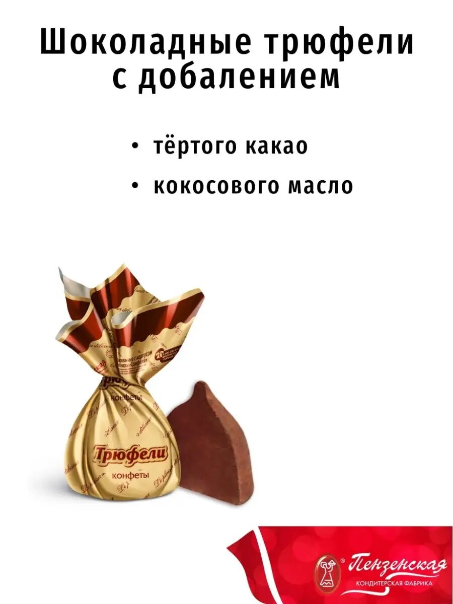 Ниже Вы можете прочитать отзывы на Конфеты "Шоколадный трюфель", Пензенская кондитерская фабрика, 1 кг, ознакомится с подробными характеристиками, посмотреть интересные обзоры и фотографии на Конфеты "Шоколадный трюфель", Пензенская кондитерская фабрика, 1 кг.