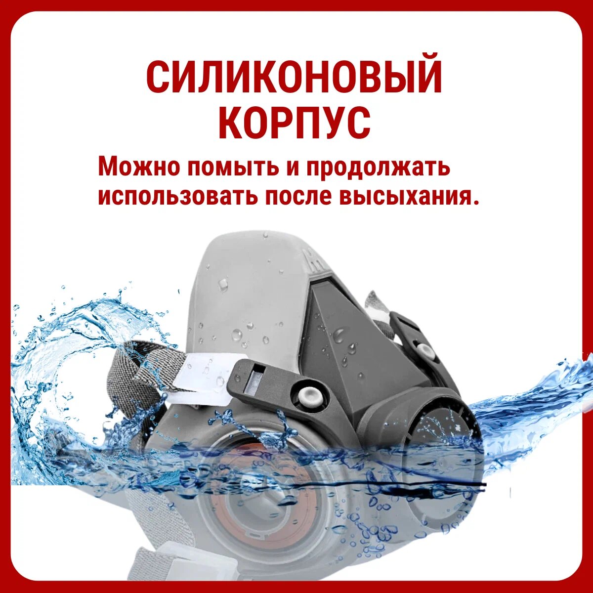 Профессиональный респиратор противогаз маска защитная 6200 замена 3М с угольным фильтром распиратор от краски пыли аллергии