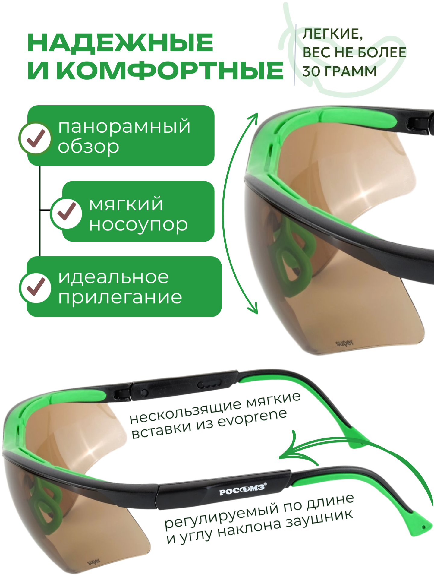 СохранитьОчки защитные РОСОМЗ О50 Monaco Super солнцезащитные, арт. 15044 (вставка от пота и пыли) интересное: