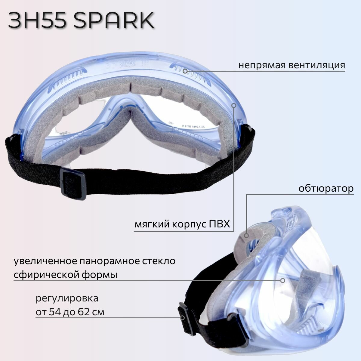 Очки защитные РОСОМЗ ЗН55 SPARK прозрачные, вставка от пыли и пота, арт. 24530 интересное: