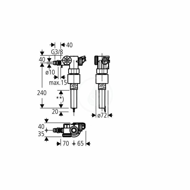 Арматура для бачка GEBERIT Impuls 380 281.004.00.1, клапан впускной, тип 380, подвод воды сбоку, 3/8" и 1/2", ниппель из латуни
