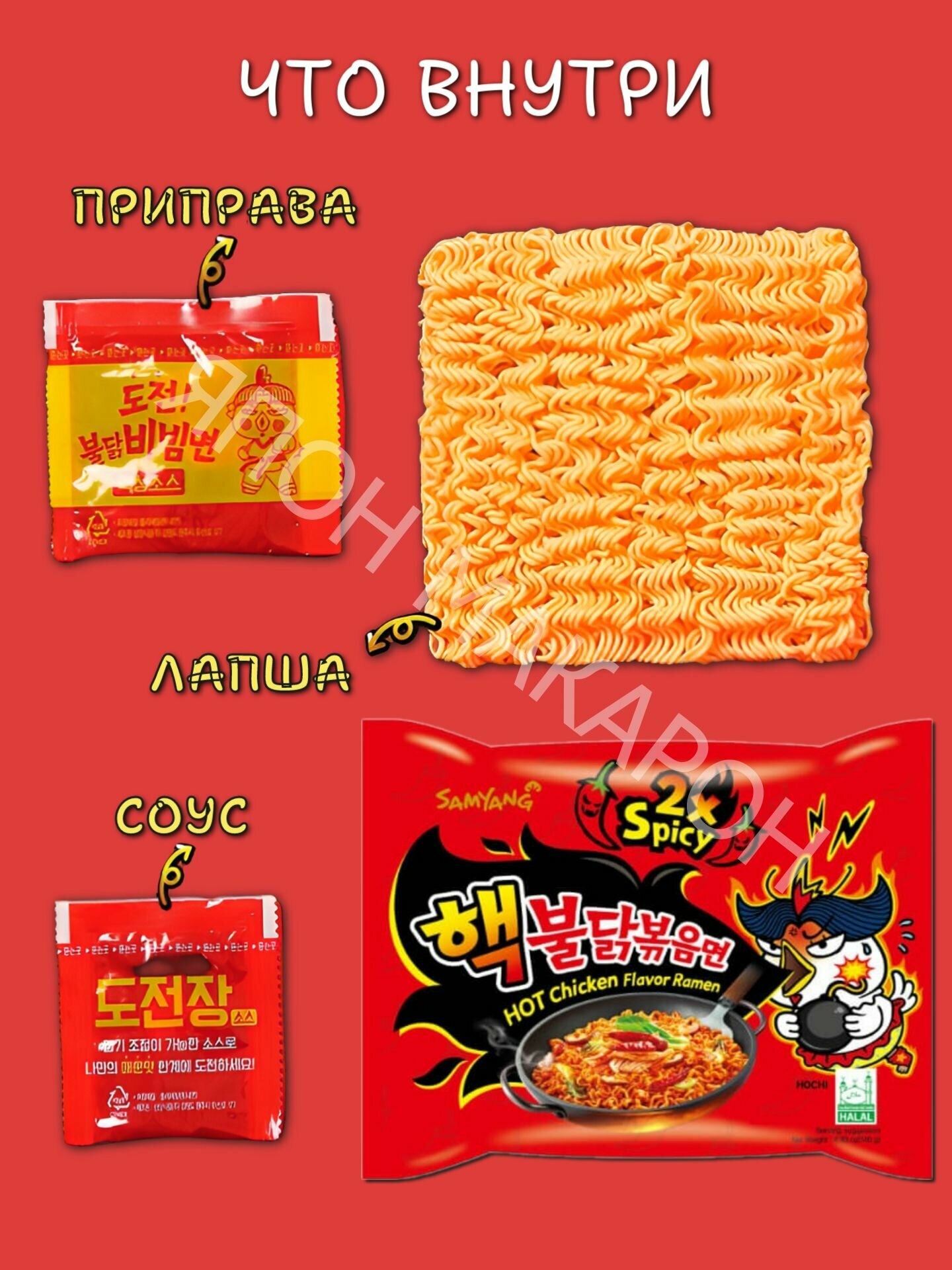 Корейская лапша быстрого приготовления SAMYANG Buldak 2x spicy и Хабанеро. Острая лапша / Корейская еда