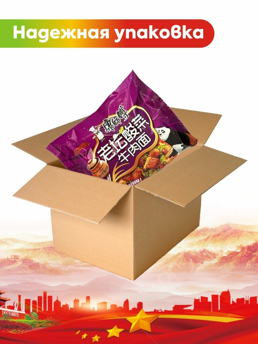 Китайская лапша быстрого приготовления с тушеной говядиной упаковка 4 штуки / красная