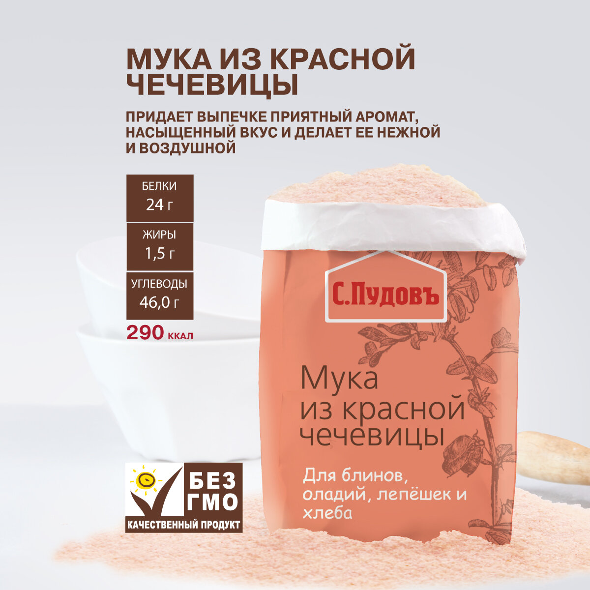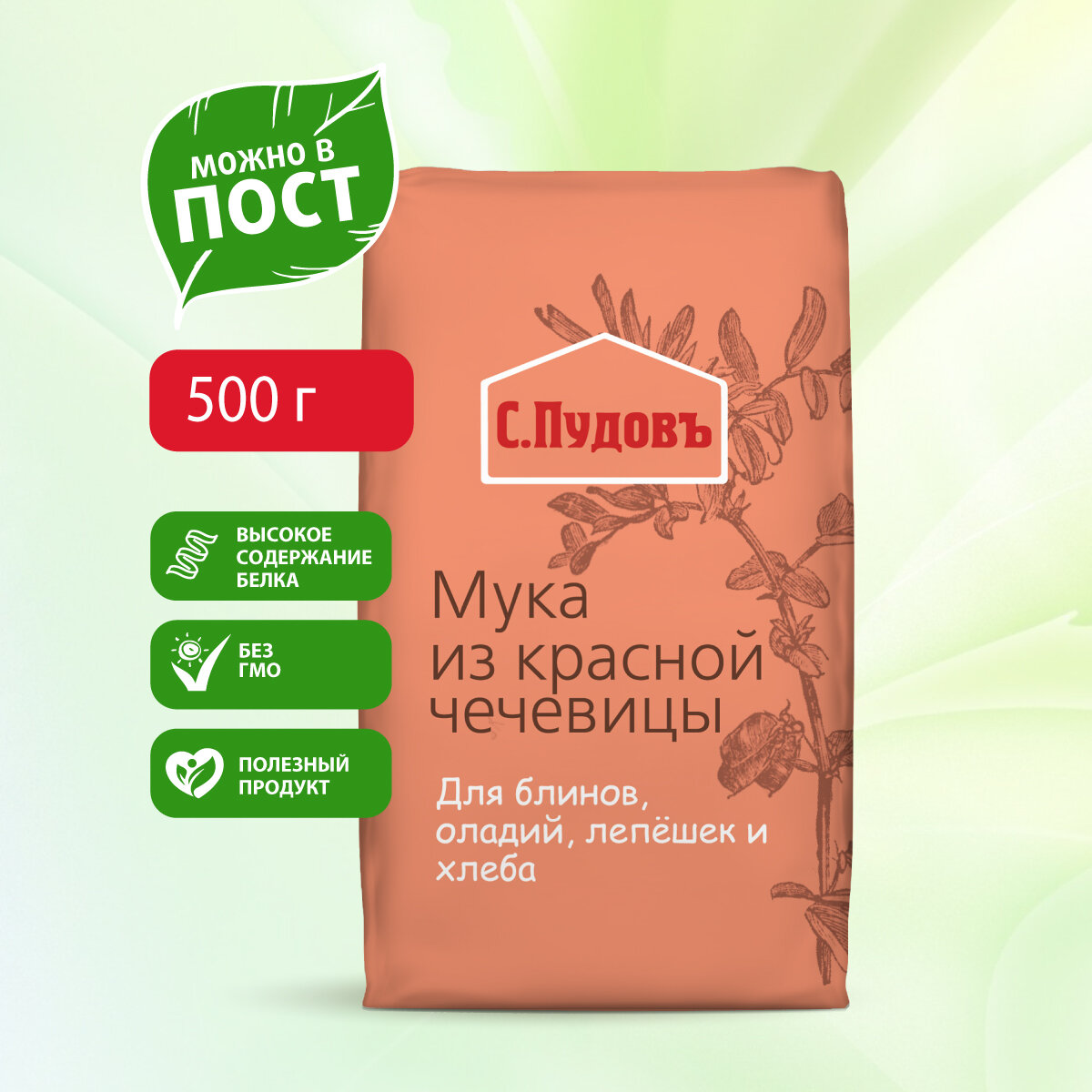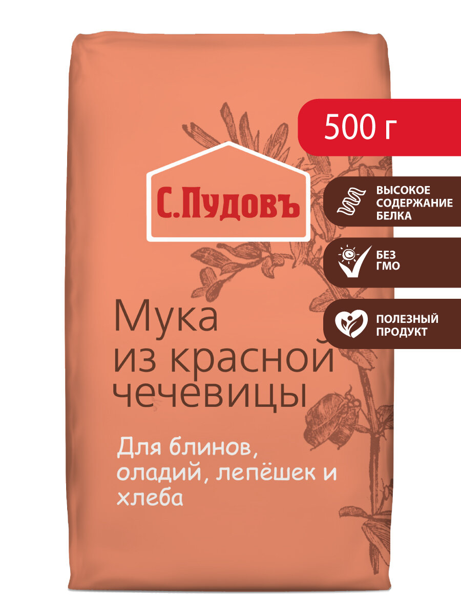Мука чечевичная, С. Пудовъ, из красной чечевицы, 0,5 кг , без ГМО интересное: