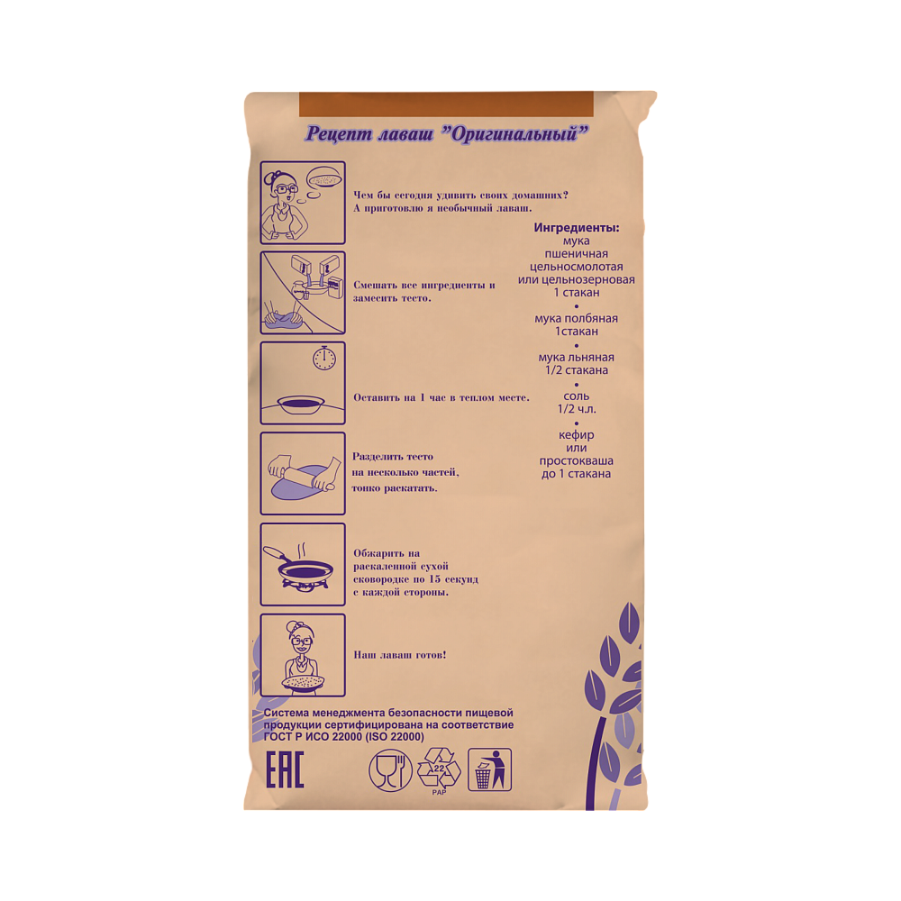 | Состав | Мука пшеничная обойная - цельнозерновая. |