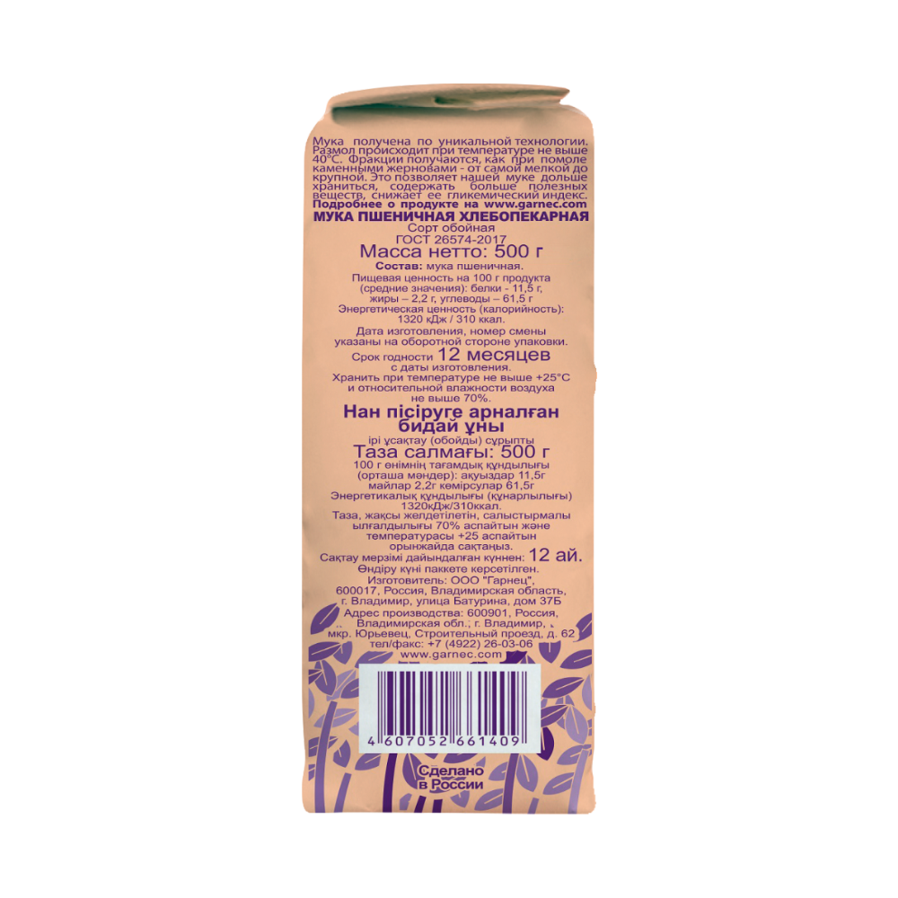 Гарнец Мука пшеничная обойная цельнозерновая 500 г интересное: