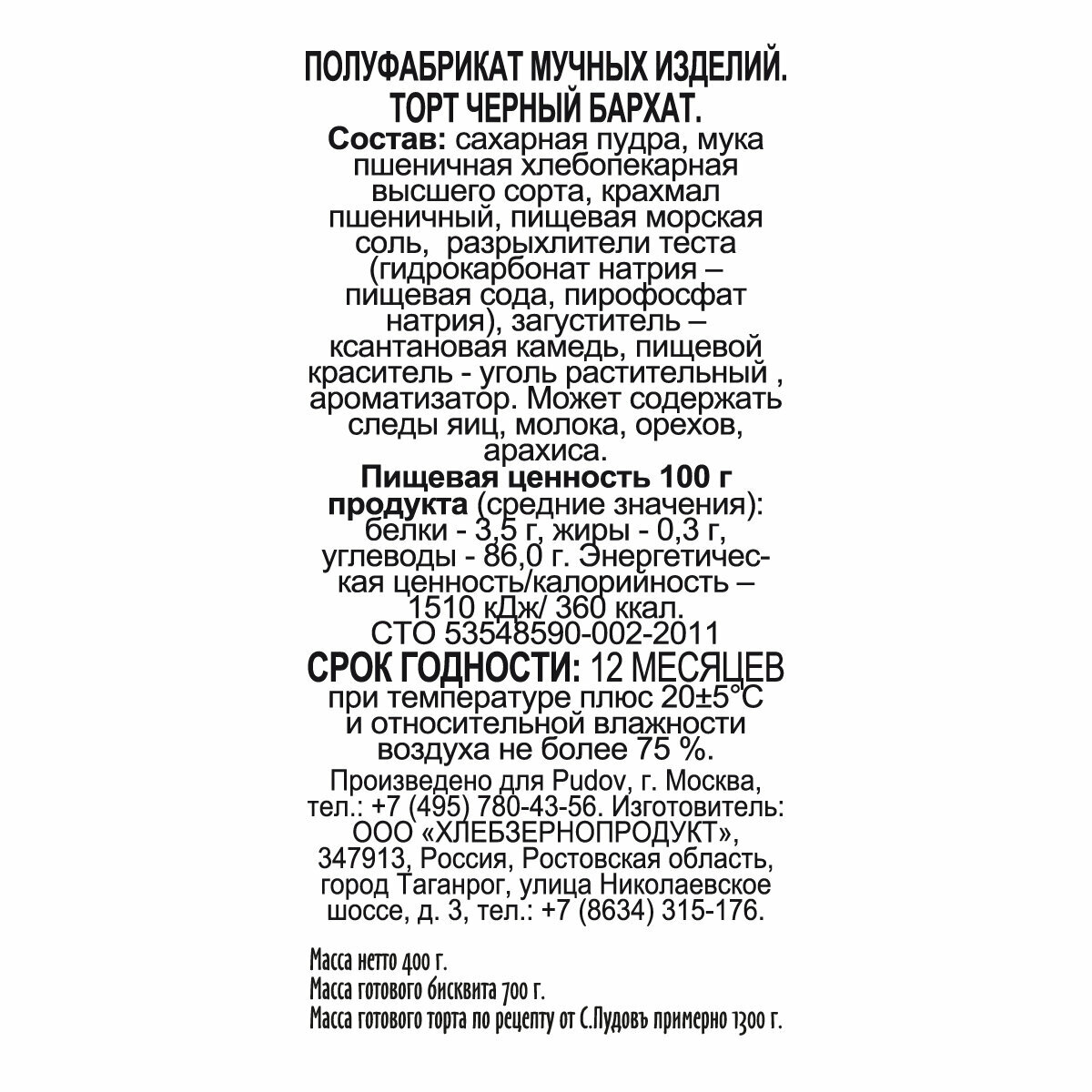 Купить Смесь для выпечки Торт Черный бархат С. Пудовъ, 400 г