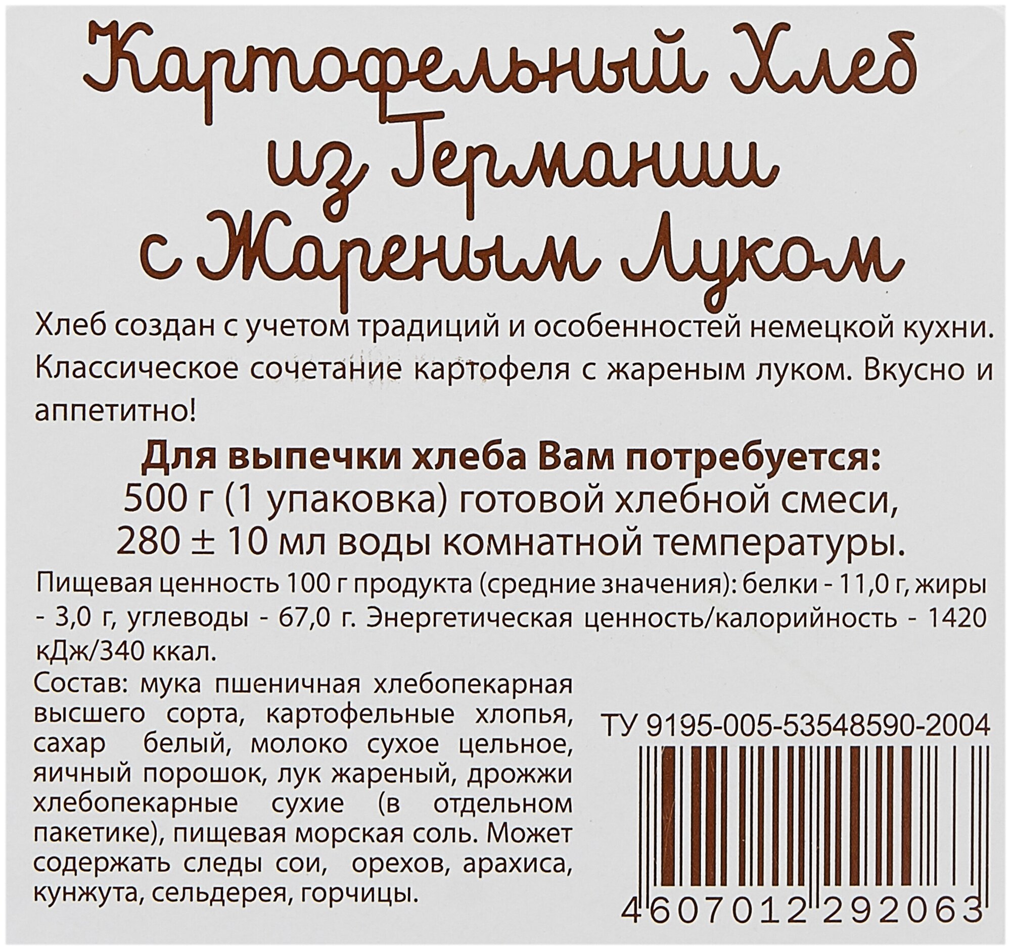 Смесь для выпечки хлеба "Картофельный хлеб из Германии с жареным луком" С. Пудовъ, 500 г интересное: