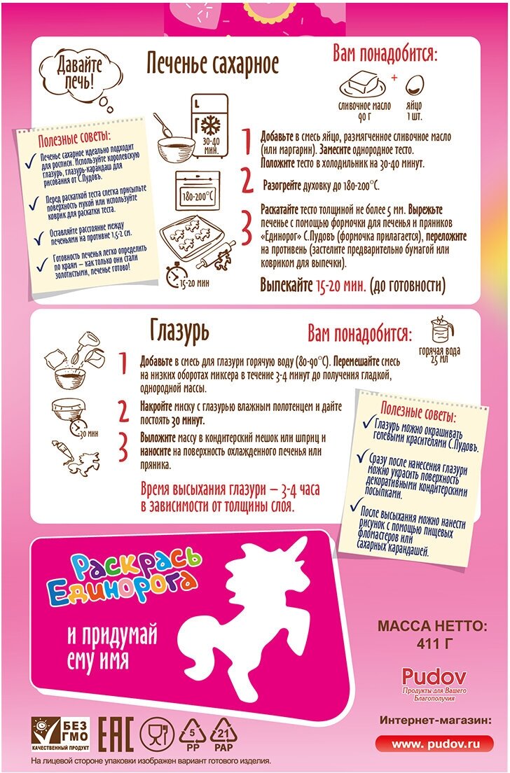 Набор для выпечки «Единорог» С. Пудовъ, 411 г (смесь, глазурь, формочка) интересное: