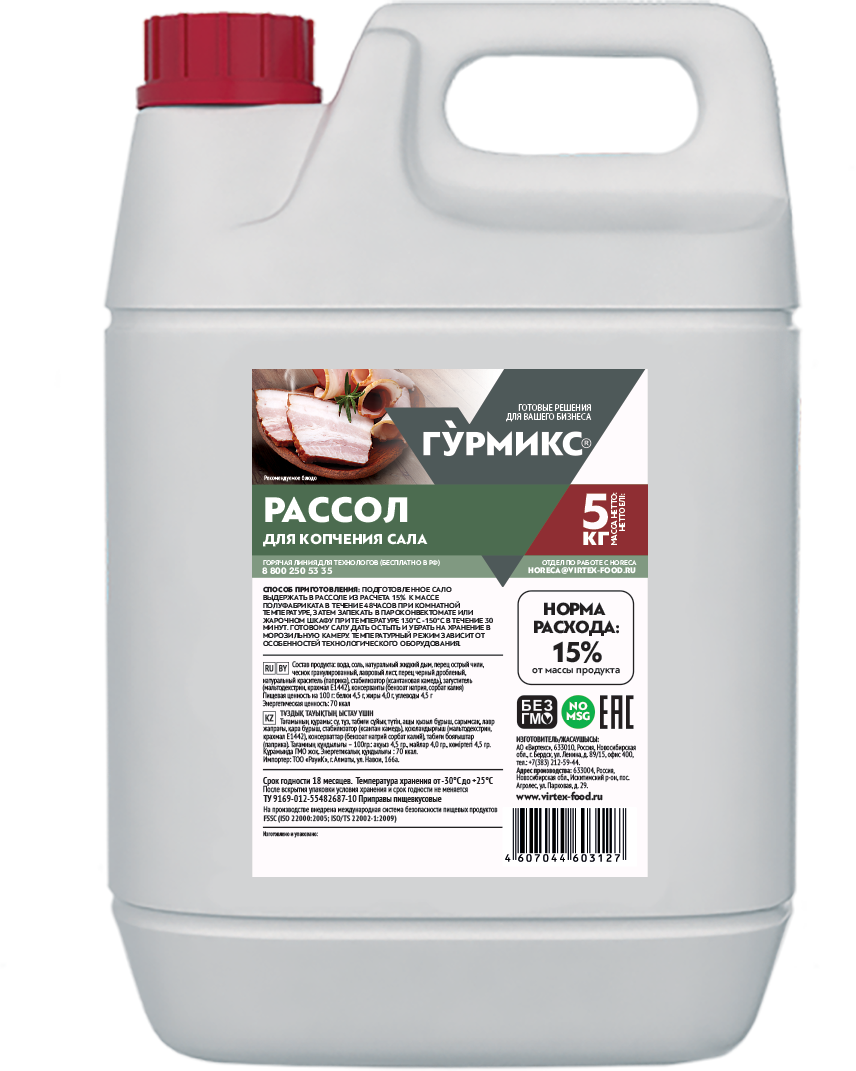 Рассол для копчения сала, Гурмикс, Пром. рассолы, 5 кг, 1 шт. интересное: