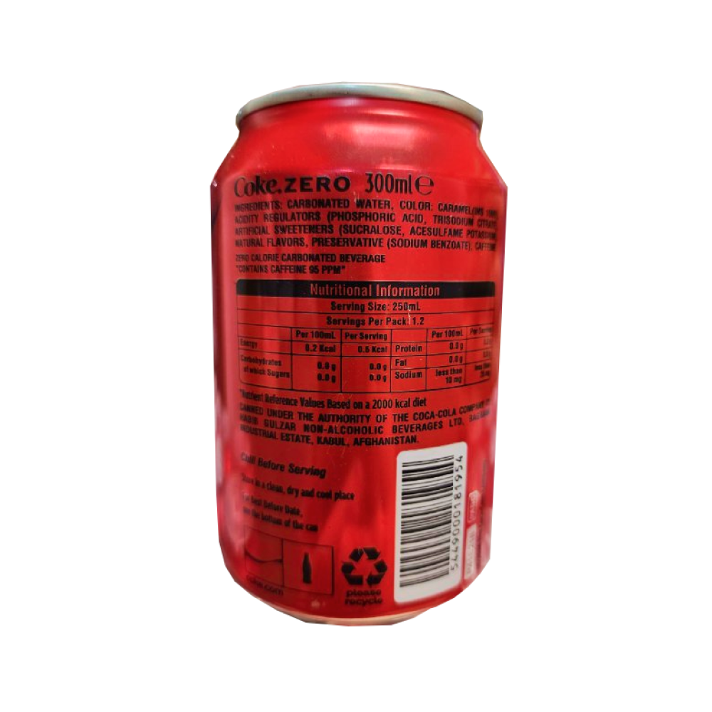 Купить Coca-Cola ZERO, Кока-кола зеро (без сахара), 300 мл, 24 банки/Афганистан