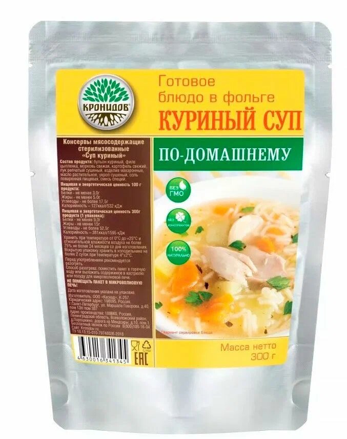 Кронидов Куриный суп по-домашнему Готовое блюдо в фольге. Консерва натуральная 300 г