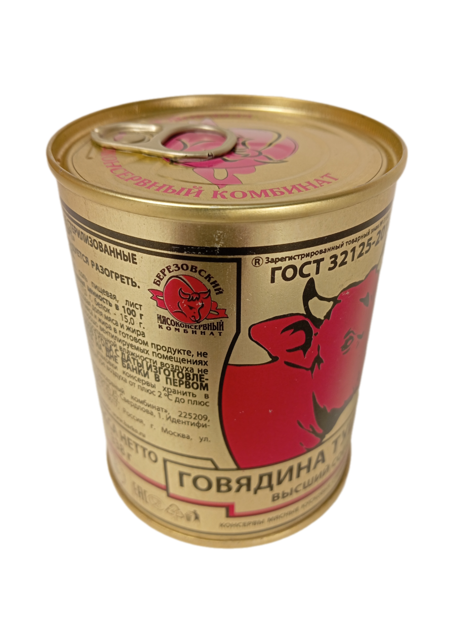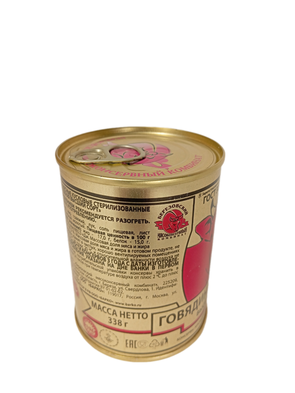 Говядина тушеная кусковая, Березовский МКК, высший сорт, 338 гр., (от 4 банок в заказе)