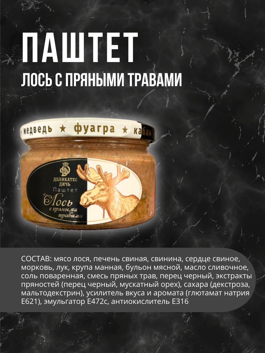 Паштет от Деликатес Дичь из мяса Лося с пряными травами в стекле 200 грамм интересное: