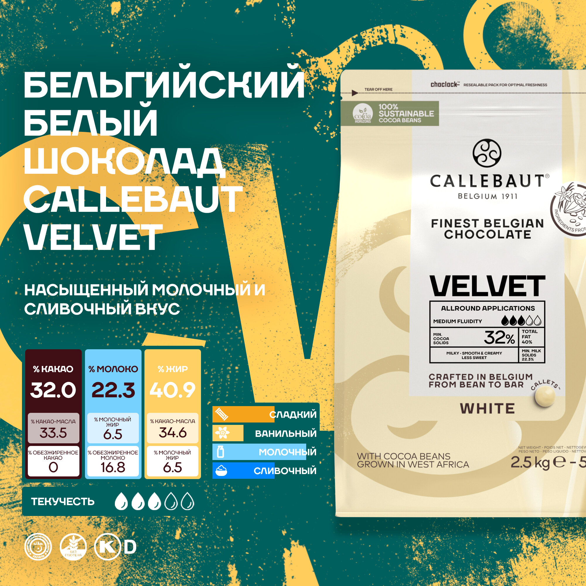 Белый шоколад Callebaut Velvet, 2,5 кг