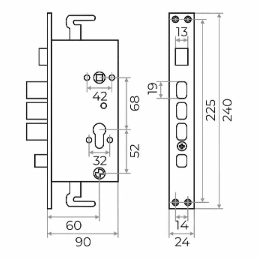 Замок врезной магнитный 25М-85 мм, чёрный Нора-М 18525