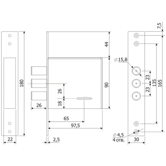 | Способ отпирания снаружи | ключ |