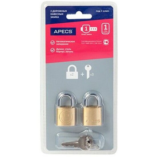 Замки навесные Apecs PDB-20-20-Blister (2Locks3Keys)