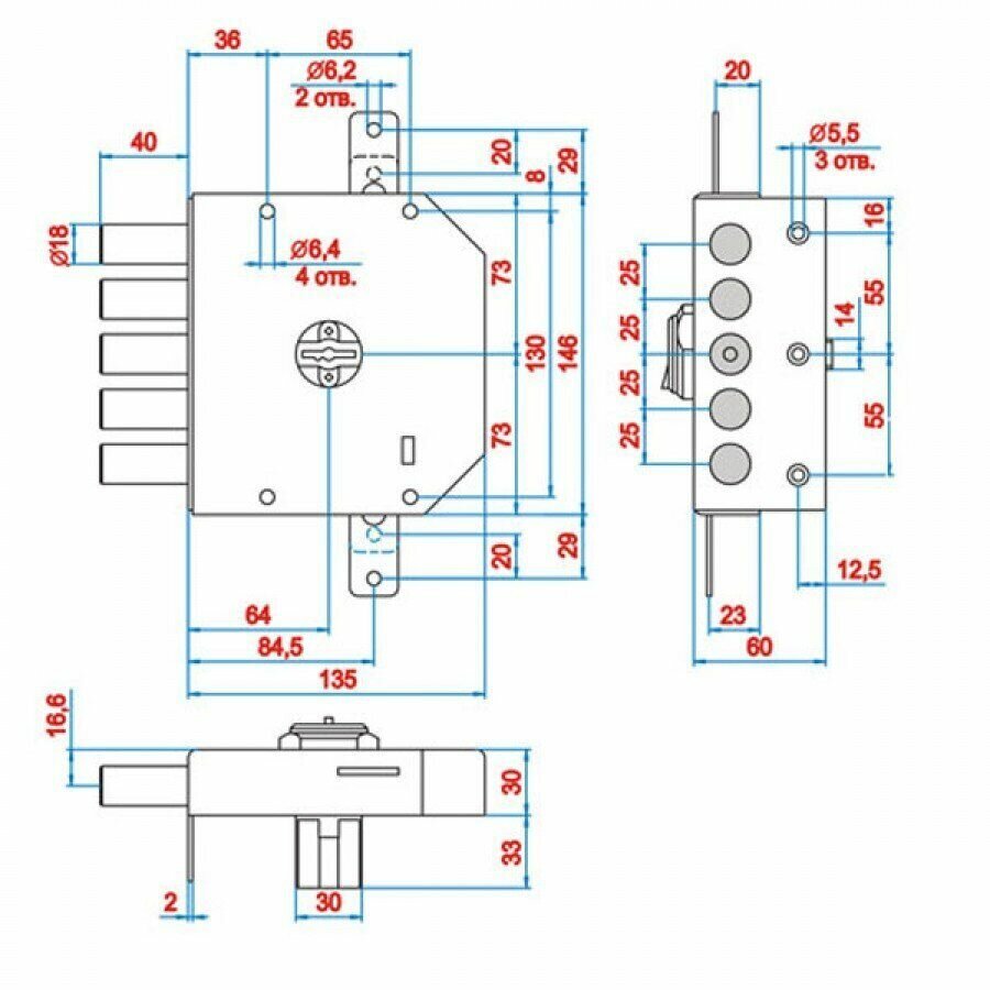 Замок накладной Эльбор Гранит 1.06.51. КМА никель, сув, 5 риг, зап. коробка, медный антик / 07340/ интересное: