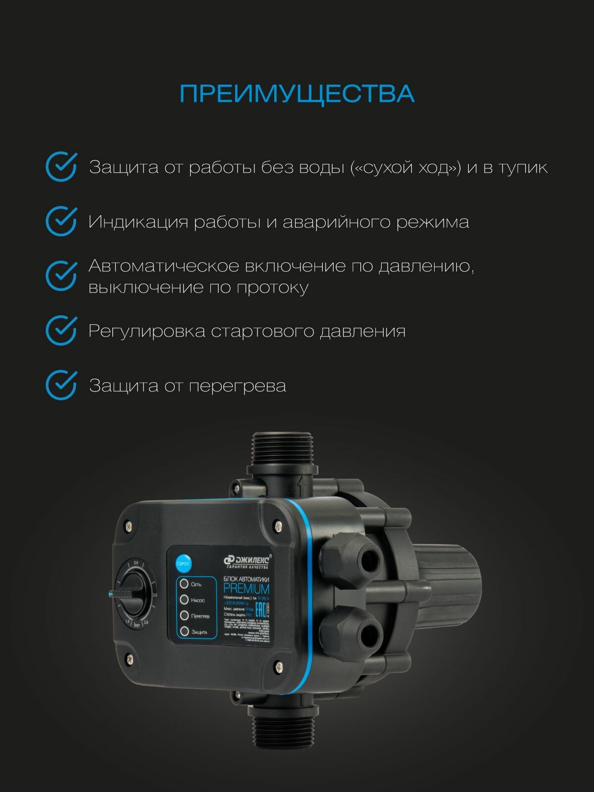 Блок автоматики Джилекс PREMIUM, скважинного и колодезного насоса, насосной станции. интересное: