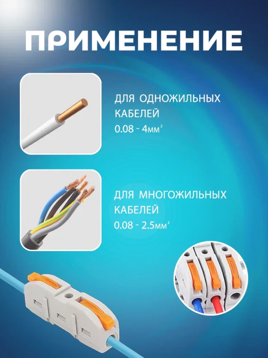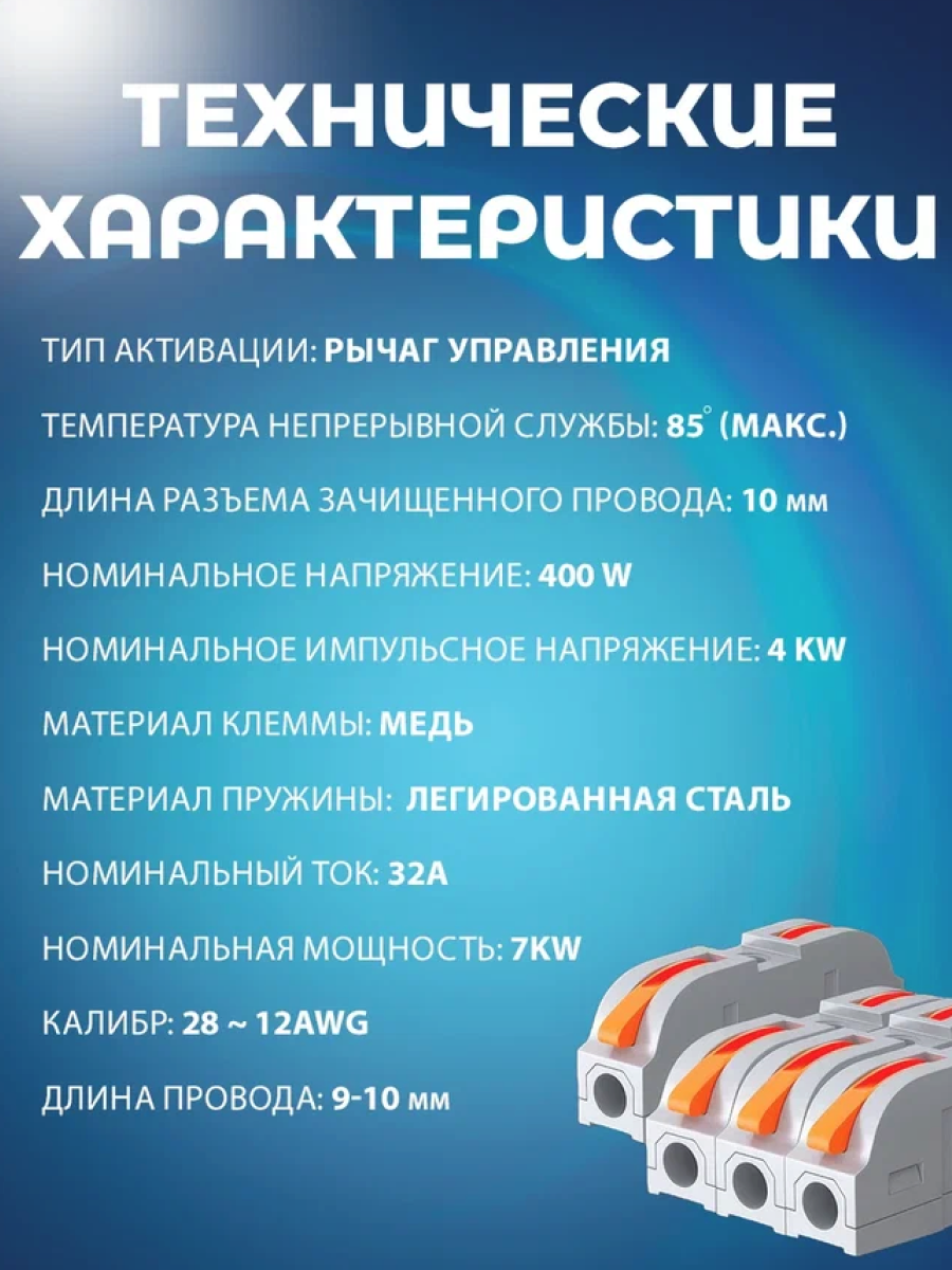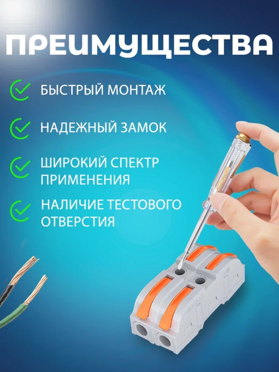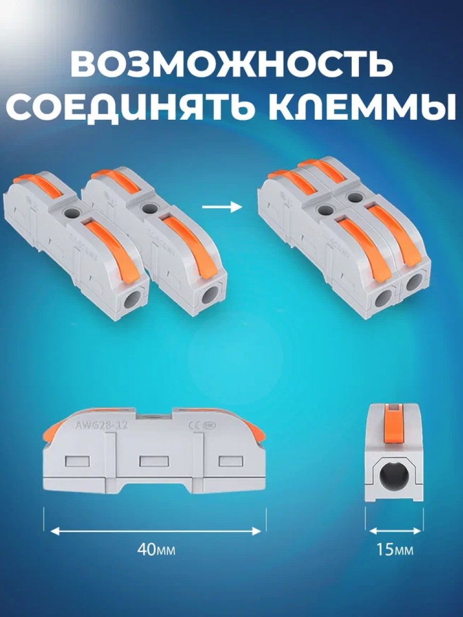 Клеммы для проводов зажимные, клемма 222-412 Электро (Аналог Wago/ ваго) - 50 шт