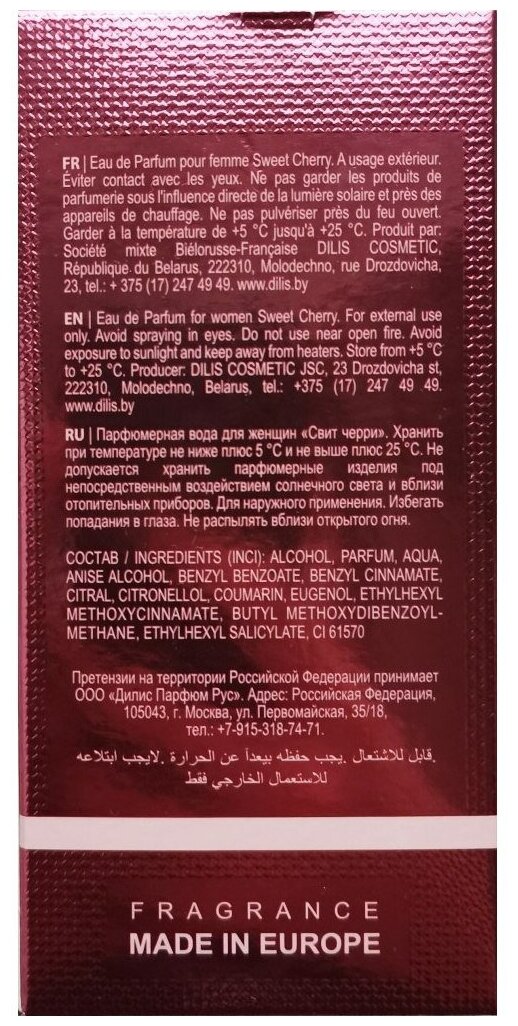 Туалетная вода Dilis Parfum Туалетная вода La Vie Sweet Cherry Lost Cherry (Объем 55 мл) - Белорусская косметика