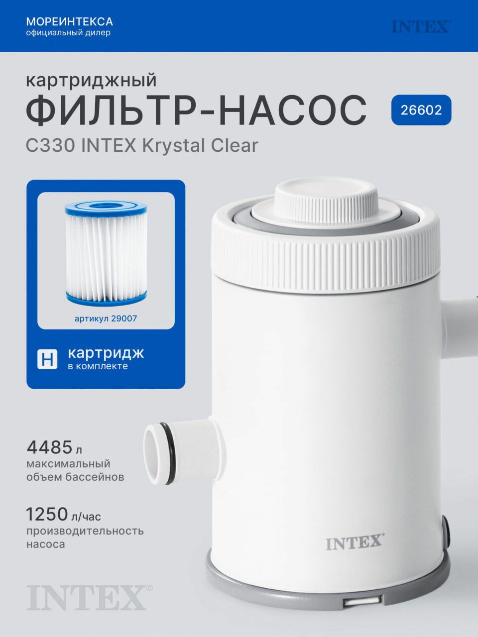 Фильтр-насос картриджный Intex для бассейнов до 305см, 1250 л/час, модель C330, арт 26602 интересное: