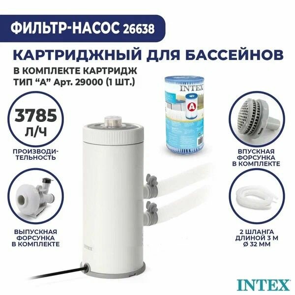 Купить Картриджный фильтр-насос C1000, 3785л/ч, картридж А, для бассейнов от 457 до 488 см INTEX, 26638