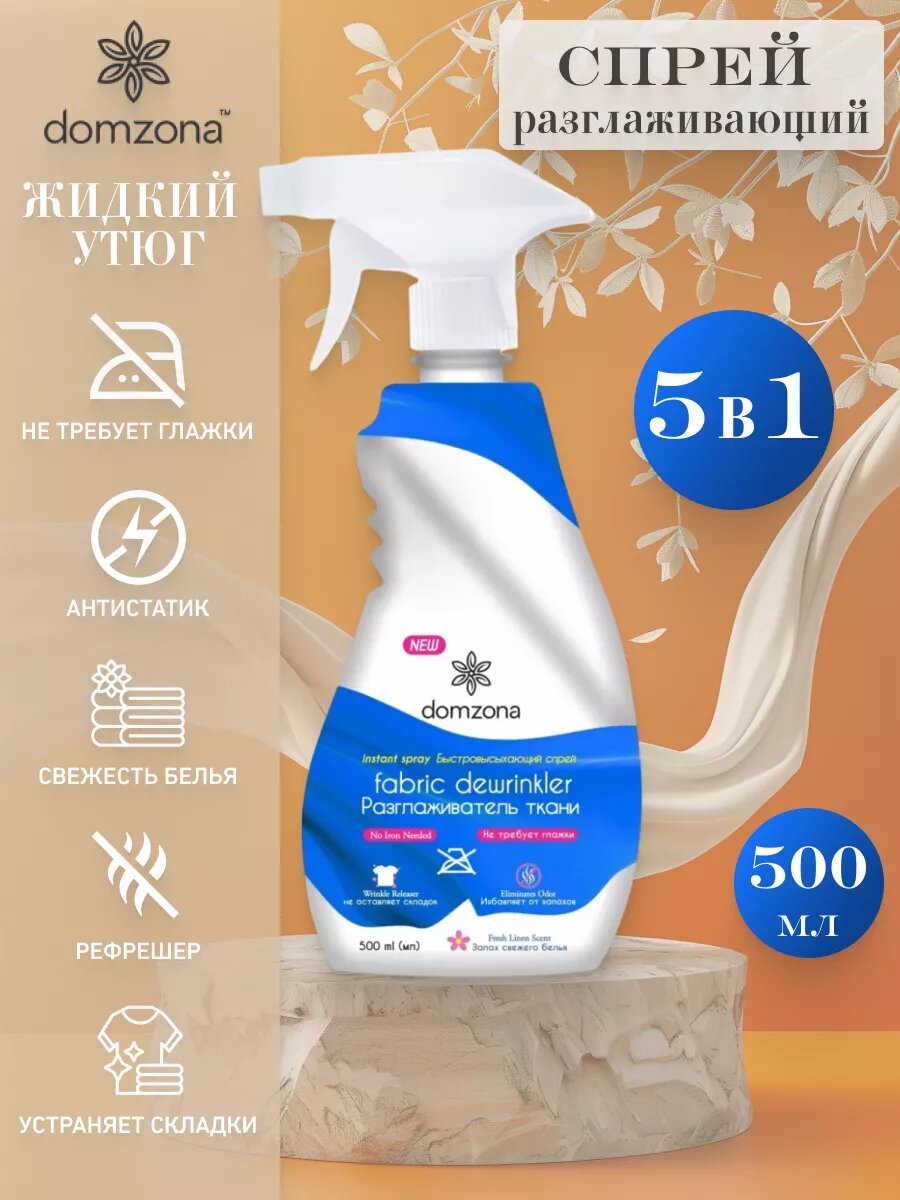 Разглаживающий спрей антистатик domzona 100 мл рефрешер жидкий утюг освежитель умягчитель ткани