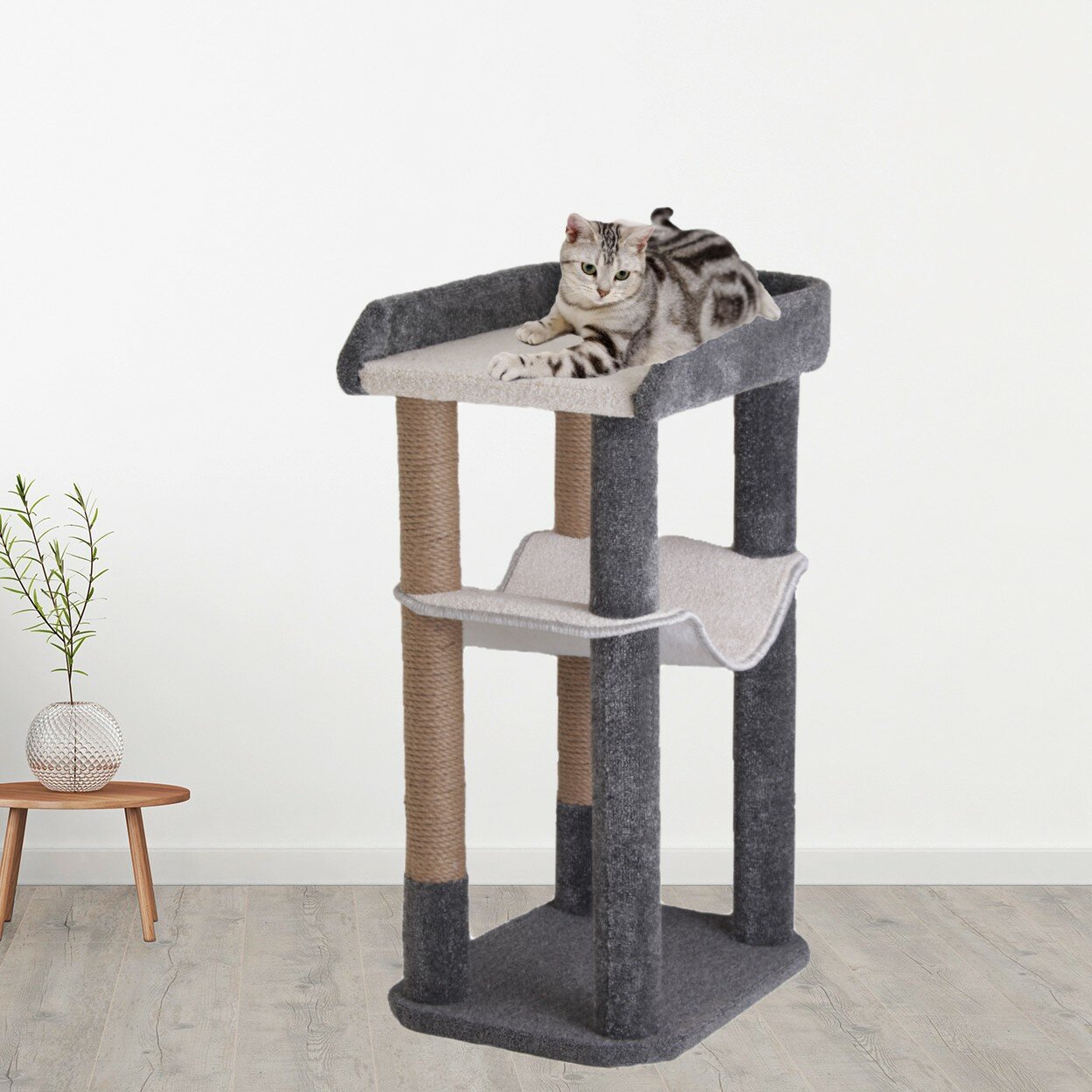 Когтеточка для кошек с гамаком и лежанками "Етк Зоо" КЛК 88, 880*520*400 мм, серый ковролин, джут