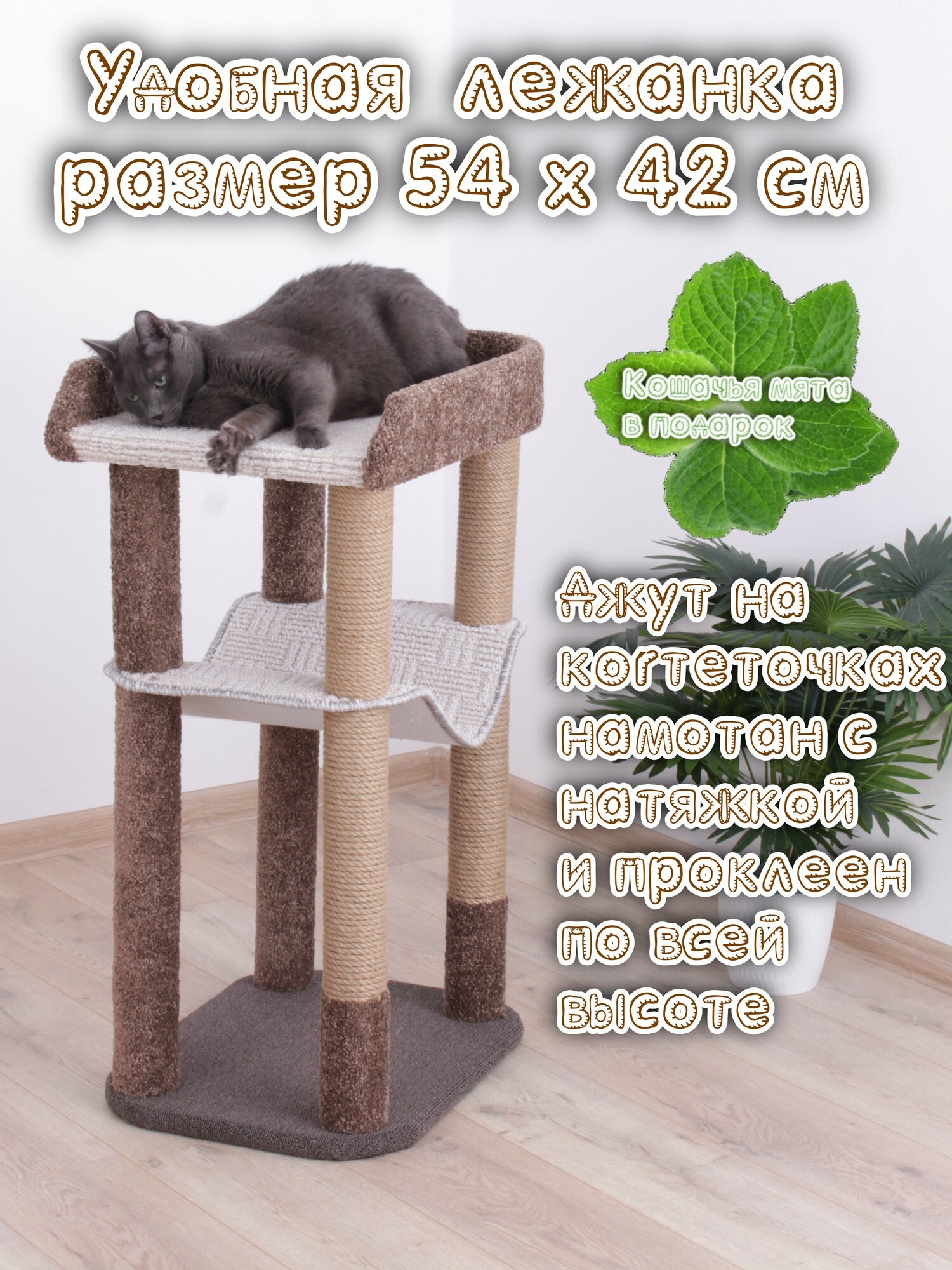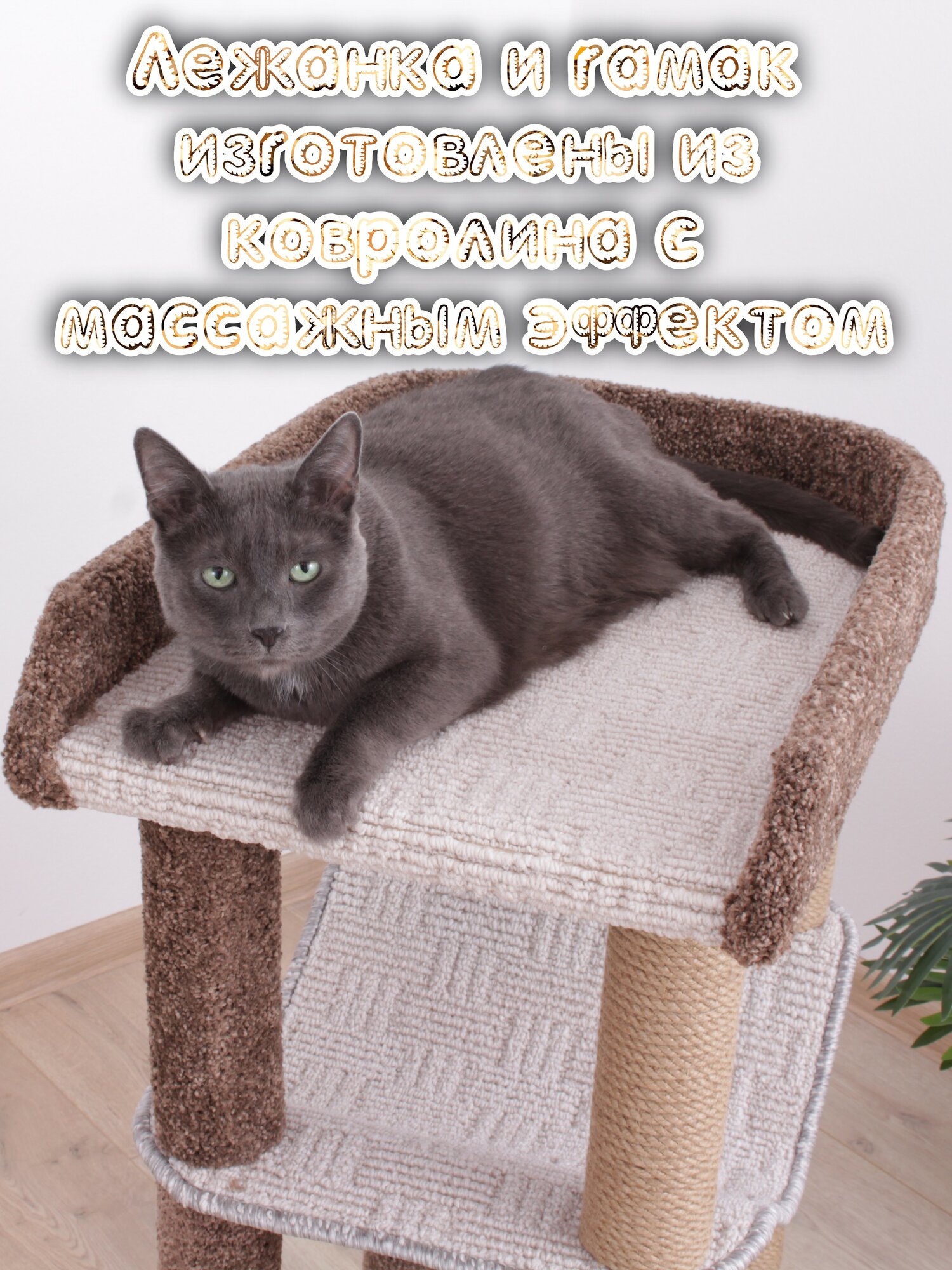 СохранитьКогтеточка для кошек с гамаком и лежанками "Етк Зоо" КЛК 88, 880*520*400 мм, белый с коричневым ковролин, джут, мята интересное: