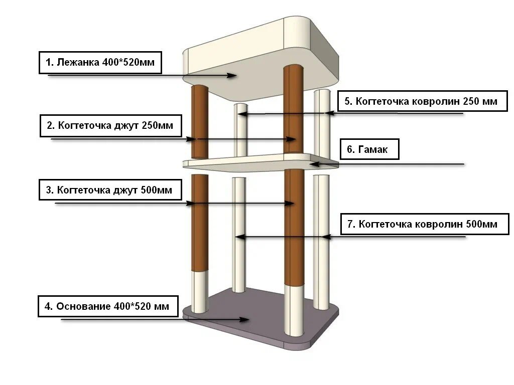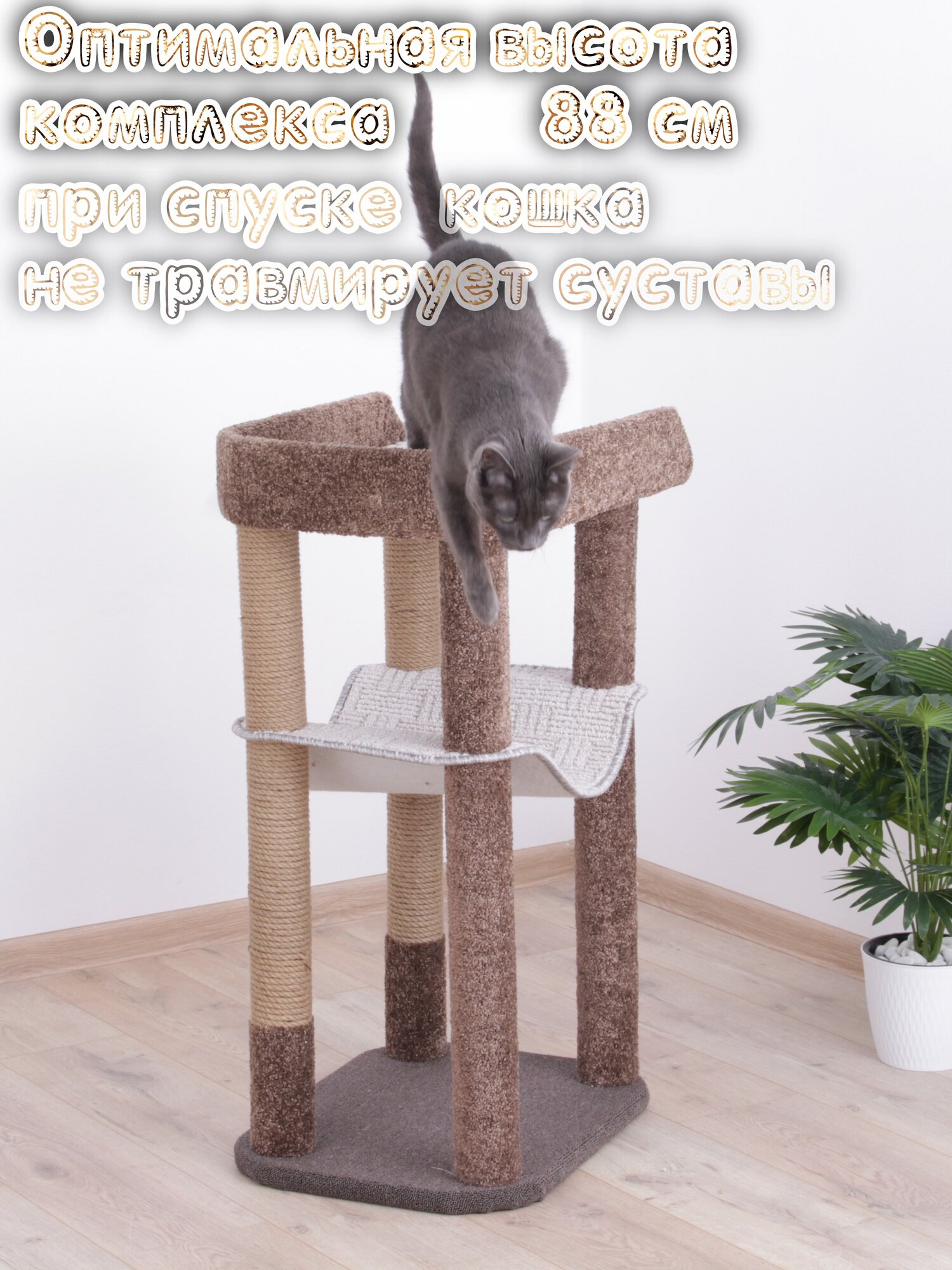 Когтеточка для кошек с гамаком и лежанками "Етк Зоо" КЛК 88, 880*520*400 мм, ковролин, джут