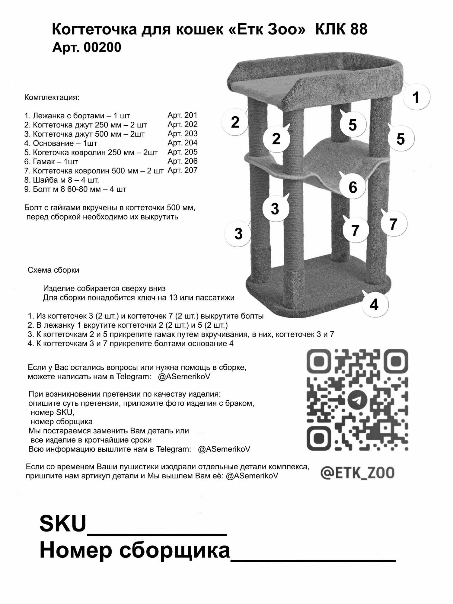 | Расположение когтеточки | напольная |