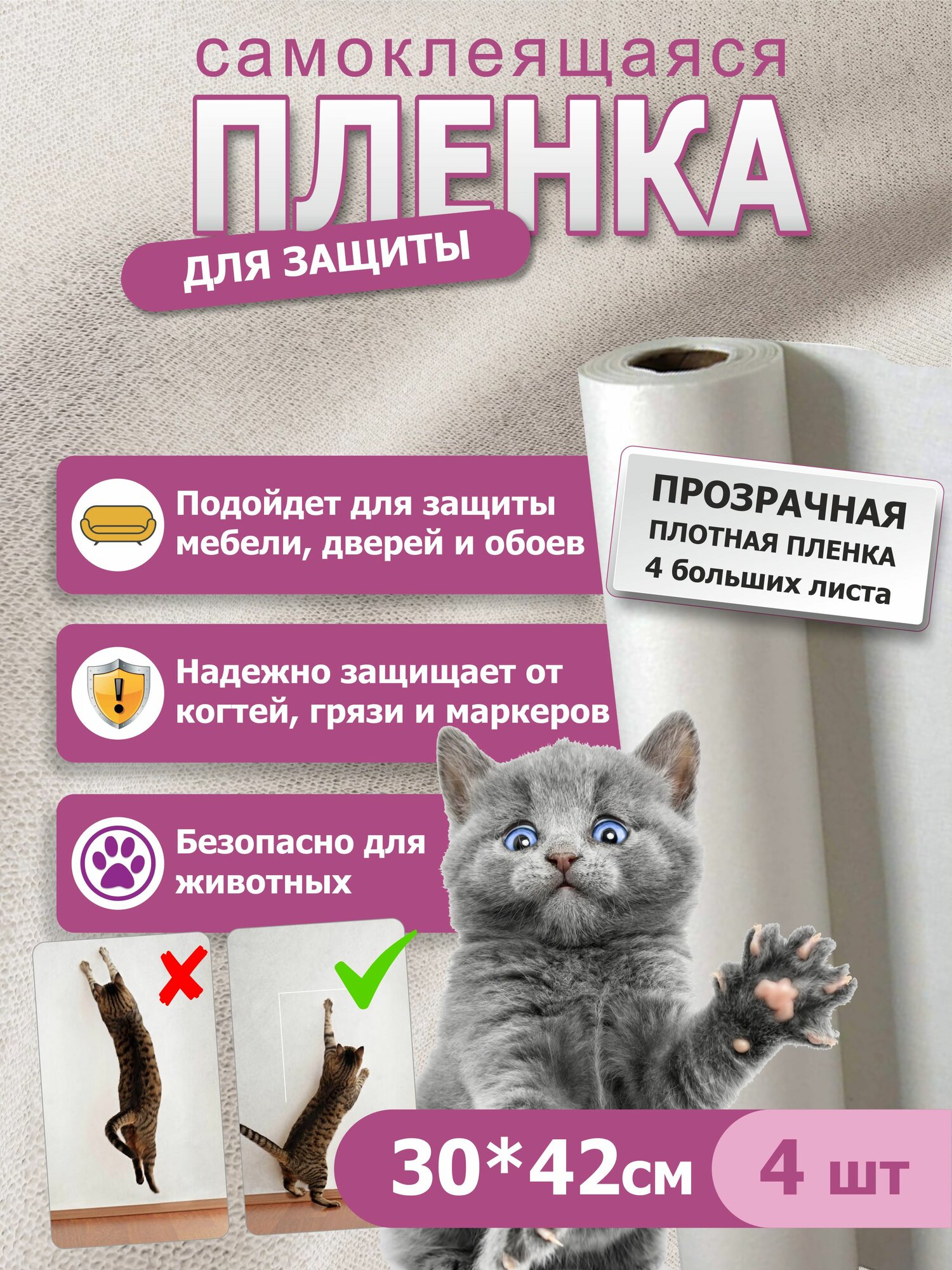 Защитная пленка B82 "Антицарапка", самоклеящаяся, от когтей, виниловая, 4 листа 42x30см интересное: