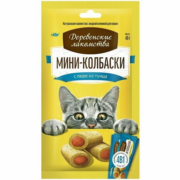 Деревенские лакомства д/кош Мини-колбаски с пюре из тунца, 4*10г интересное: