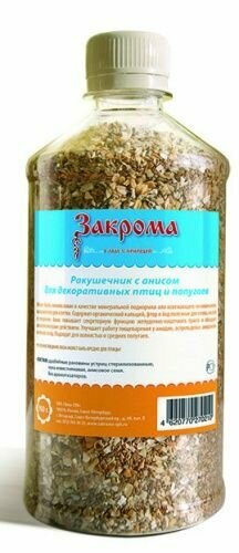 Закрома ракушечник с анисом для декоративных птиц и попугаев, 900 г интересное: