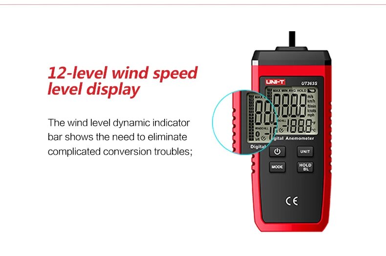 Мини-анемометр UNI-T UT363S, тестер скорость ветра, температура с ЖК-дисплеем, макс. скорость потока воздуха/AVG, измерение уровня ветра 1 ~ 12