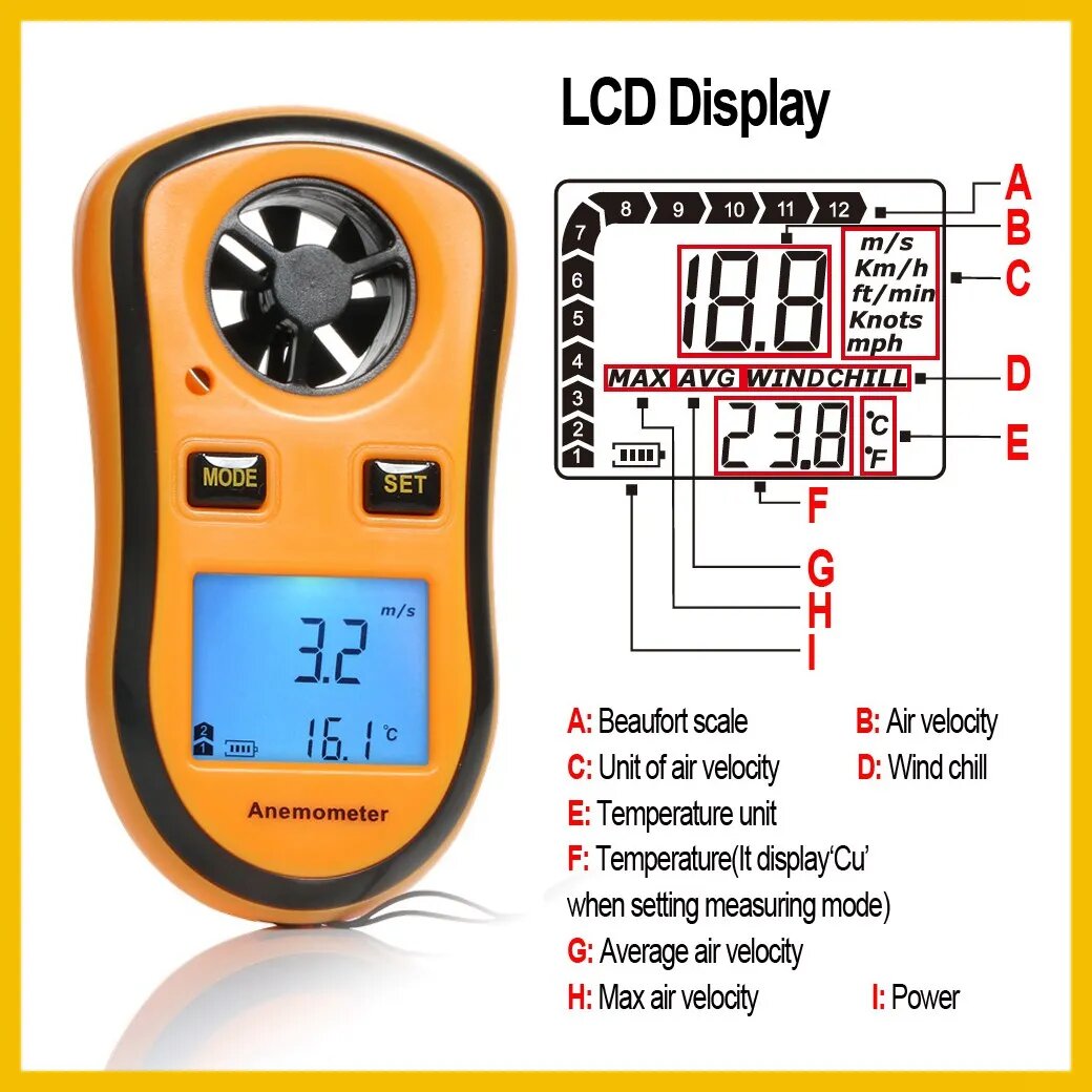 Портативный анемометр RZ GM816 с ЖК-дисплеем для измерения скорости ветра