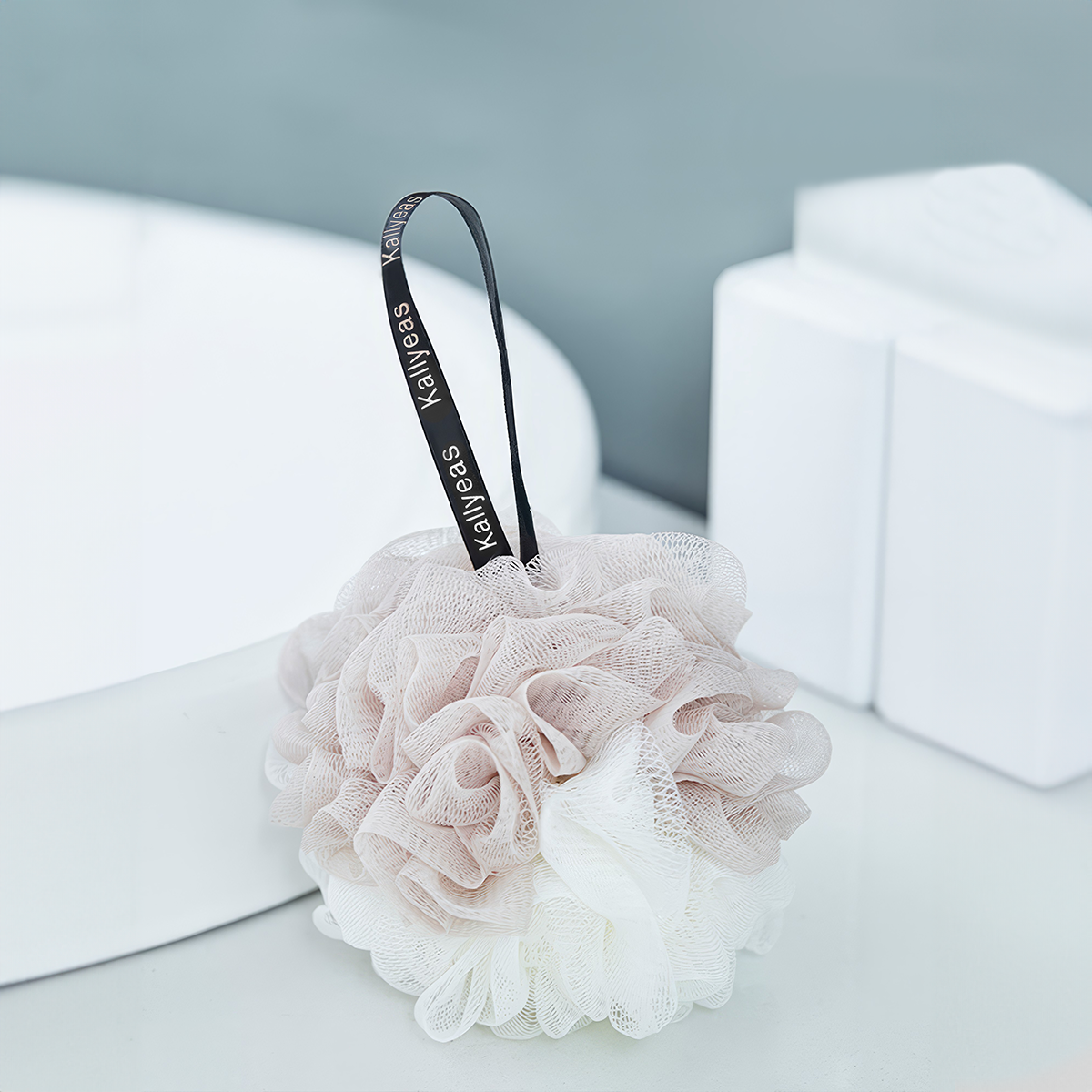 Мочалка для тела Kallyeas, двухцветная, массажная, с петелькой, светло-розовая