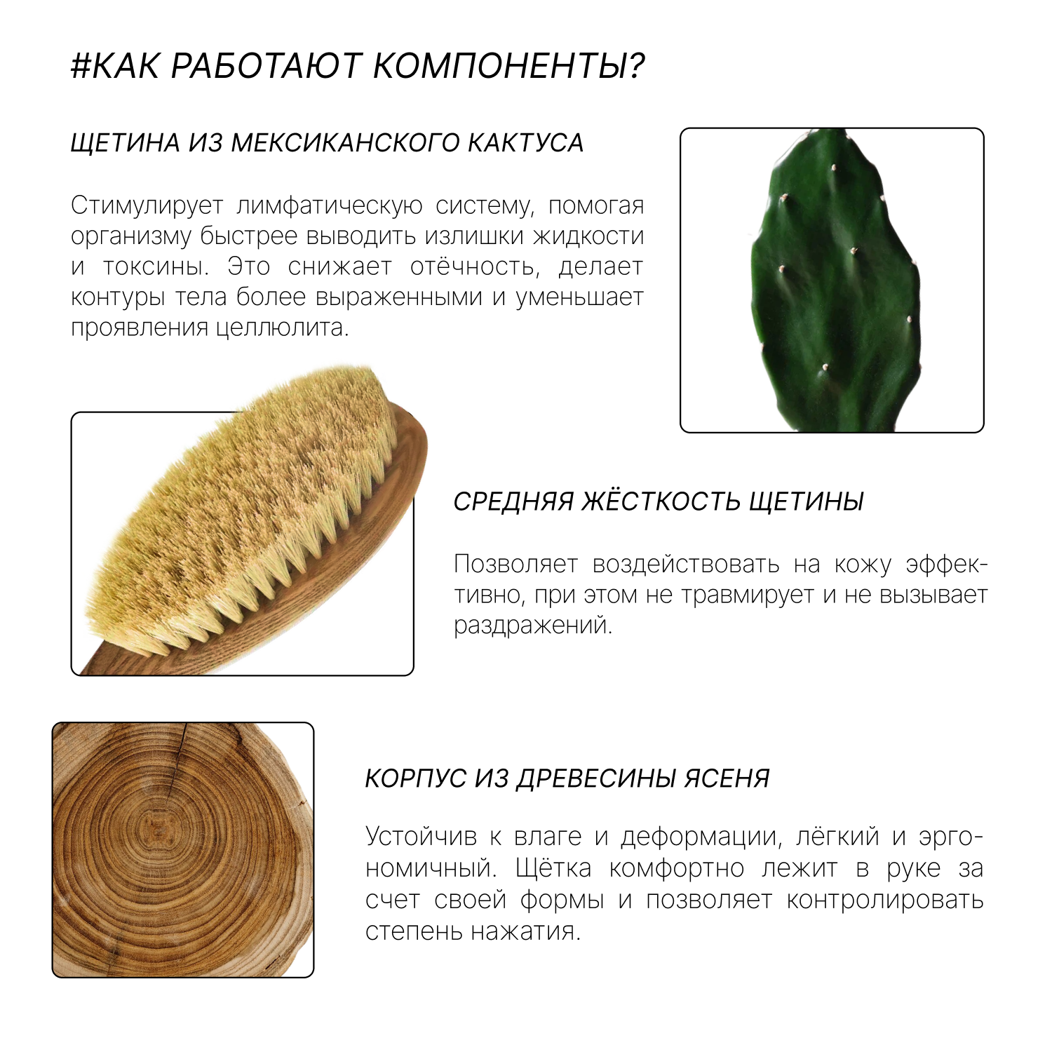 RICHE Щётка для сухого лимфодренажного массажа тела Ясень и кактус интересное: